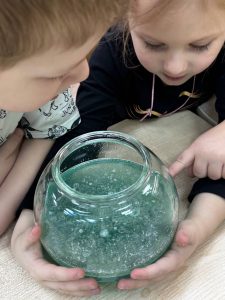 В рамках регионального проекта «Предшкола: стандарт детского сада» на тематической неделе «Экспериментариум» в дошкольном отделении ул. Октябрьская, д. 9а в старшей группе «Звёздочки» ребята провели опыты с водой.