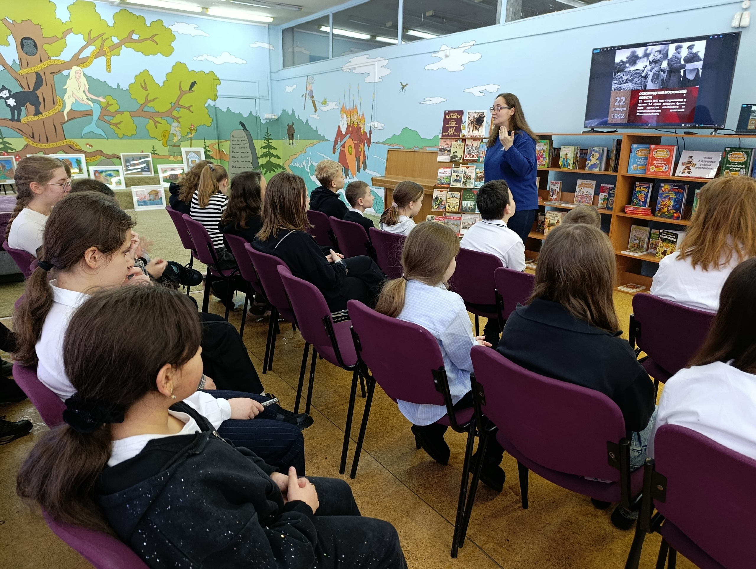 Ко Дню освобождения Московской области от фашистских захватчиков 22 января в Детской библиотеке №12 для учащихся 5В класса прошёл час фронтовой славы и памяти «За нами Россия, за нами Москва!».