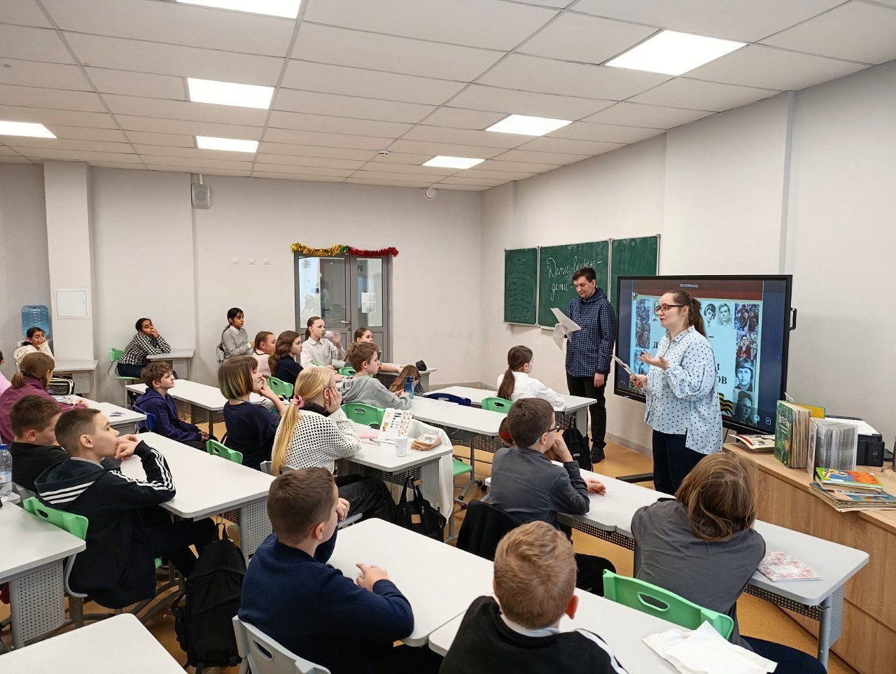 ✅ В ходе мероприятия были продемонстрированы видеоролики о детях-героях, звучали стихи и песни военных лет. В завершение состоялся обзор книжной выставки «Дети войны — дети Победы», представившей литературу о юных защитниках Родины.