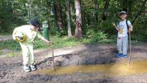 Начали путешествие по традиции от ЦУПа и отправились в Лосиный остров. Детворе понравилось наблюдать за облаками в узком просвете между деревьев, педагоги и родители напомнили, какие деревья растут в нашей полосе, какие животные и птицы водятся в Лосином острове. Наши туристы встретили лосиную кормушку с солью, дошли до контактного зоопарка, где покормили домашних коз. Ребята очень любят такие походы, да и родители тоже!